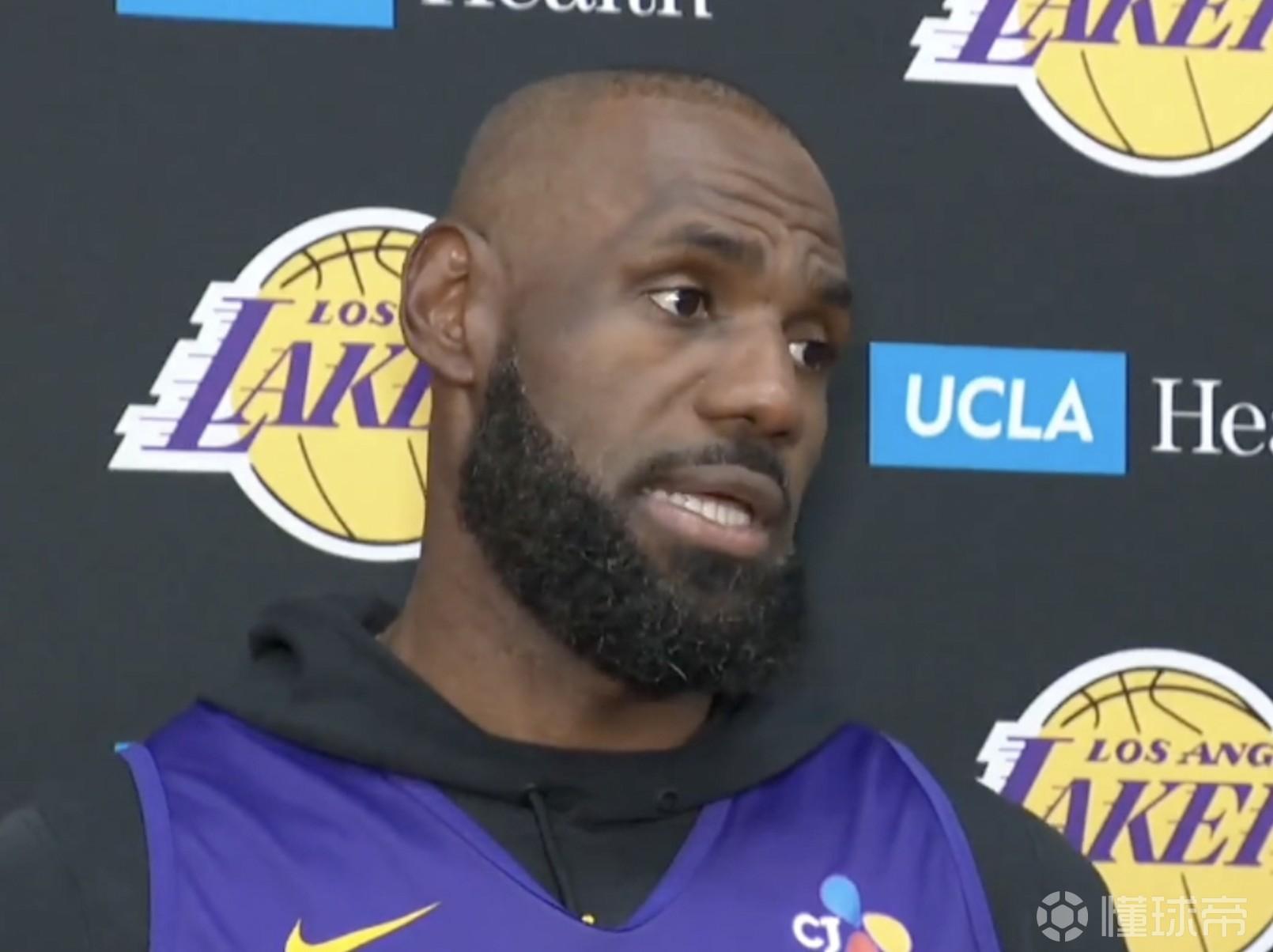 北京时间4月17日,在NBA季后赛首轮对阵火箭队赛前,湖人队球员詹姆斯接受了媒体的采访。