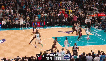 今天,夏洛特黄蜂终于支棱起来了,迎来了他们十多年来最要命的一场比赛。在对阵迈阿密热火的生死附加赛中,黄蜂队虽然偶有断电,但还是用一场疯狂的表演让苦等多年的球迷直呼过瘾。拉梅洛·鲍尔也是抢戏,上半场刚因为疑似绊倒阿德巴约被球迷狂喷,加时赛最后不到5秒就打进反超上篮,硬是把球队以127-126抬过了终点线。不过,能有这绝杀的戏份,全靠前面那个救命的关键球。