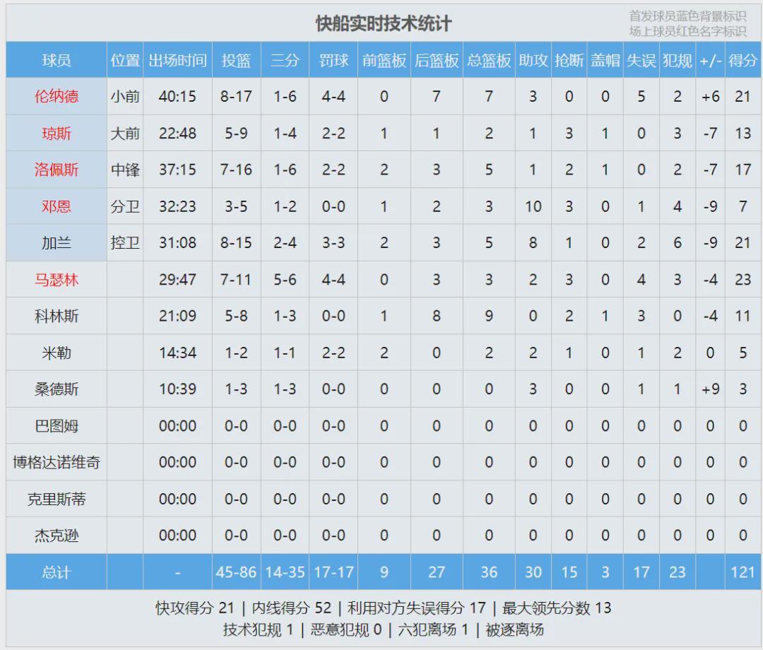 追梦生生抢断伦纳德,第四节把小卡锁死了。快船大势已去,全场结束,勇士126-121淘汰快船,末节勇士狂轰43分,下一场对阵太阳。库里三分12中7,轰下35分4助攻。桑托斯和波神各砍20分,波杰17+7,霍福德砍下14分。