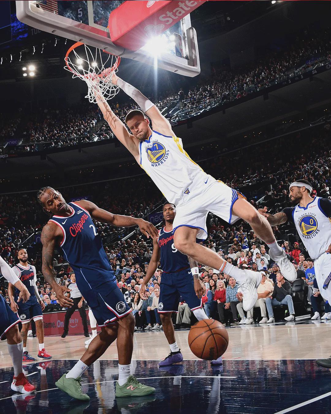 勇士首发:库里、波杰姆斯基、桑托斯、追梦格林、波尔津吉斯。快船首发:加兰、邓恩、小德里克-琼斯、伦纳德、大洛佩斯。加兰最近外线手感不佳,进入4月份之后,加兰的三分球合计42中11,三分命中率只有26.2%。
